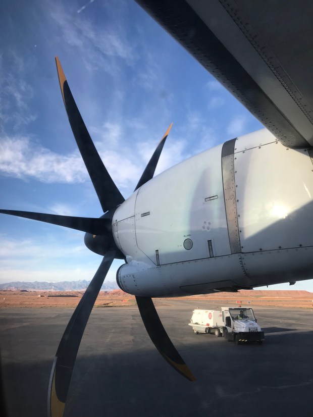 Da dies mein erster Flug in einer Propellermaschine war, empfand ich sowohl den Start als auch die Landung etwas „ruckeliger“ als in Maschinen mit Turbinentriebwerken.